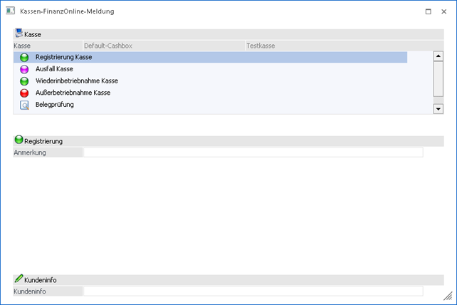 können die in den Kasse-Stammdaten angelegten Kassen bzw. Signaturen ausgewählt und eine XML-Datei erstellt werden, welche im FinanzOnline-Portal hochgeladen und dadurch auch gesetzeskonform gemeldet werden können.