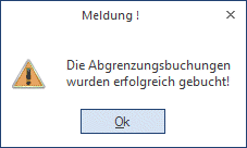 Durch Anklicken des OK-Buttons bzw. durch Drücken der F5-Taste werden alle selektierten Abgrenzungsbuchungen aufgelöst bzw. verbucht.