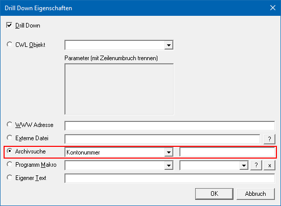 Archiv-Suche durchgeführt werden soll. Dadurch wird dann eine Archiv-Suche mit