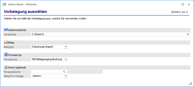 Nach der Definition der Aktionsdetails erfolgt im nächsten Schritt die Angabe zu "Benutzer und Mandant".