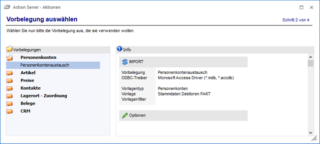 Nach der Definition der Aktionsdetails erfolgt im nächsten Schritt die Angabe zu "Benutzer und Mandant".