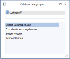 Durch Auswahl der Vorlage wird bestimmt, welche Datenfelder in welcher Reihenfolge exportiert werden sollen. Die Vorlagen werden im Menüpunkt