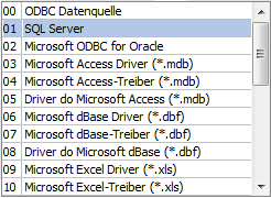 Für den Treibertyp "ODBC-Treiber" stehen alle ODBC-Treiber zur Auswahl, die im System installiert sind, z.B.: