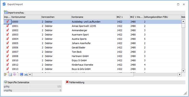 innerhalb der Importvorschau angezeigt, wie viele Datensätze gültig (fehlerfrei)