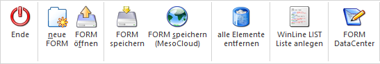 Wenn ein FORM zur Bearbeitung geöffnet ist (unabhängig davon, ob es sich um ein neues FORM handelt, oder ob ein bestehendes FORM bearbeitet ist) gibt es allgemeine Programmfunktionen: