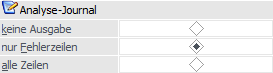 An dieser Stelle kann entschieden werden, in welcher Form das Analyse-Journal ausgegeben werden soll, welches bei Anwahl des Buttons "Ok" erzeugt wird. Dabei gibt es folgende Möglichkeiten: