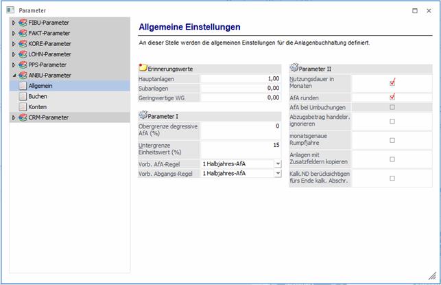 Über den Bereich "ANBU-Parameter - Buchen" können die allgemeinen Einstellungen für die WinLine ANBU definiert werden.