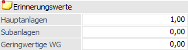 Im Eingabefeld ist ein Wert (1,00 oder 0,01) zu hinterlegen, auf den bei Verwendung des Erinnerungswertes abzuschreiben ist.