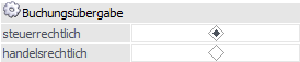 Mit diesen Radiobuttons wird entschieden, welche Perioden- und Jahresabschreibung in die Finanzbuchhaltung übergeben werden soll. Es kann entweder die steuerrechtliche oder die handelsrechtliche Abschreibung in die FIBU übergeben werden. Voreingestellt ist "steuerrechtlich".