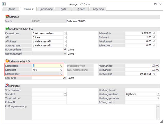 Der Anschaffungswert von 12.500,-- (= Index 100) wird für die Berechnung der kalkulatorischen Afa mit 18.750,-- (= Index 150) angesetzt.