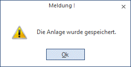 Ein neu erfasstes Anlagegut wird automatisch abgespeichert, wenn in das Register Entwicklung gewechselt wird. Es kommt jetzt der entsprechende Hinweis.