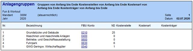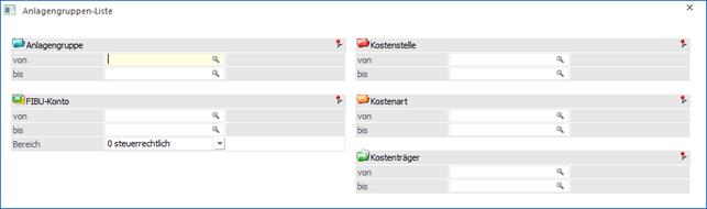 Die Ausgabe kann auf bestimmte Anlagengruppen, der das Inventargut im Anlagenstamm zugeordnet wurde, eingeschränkt werden.