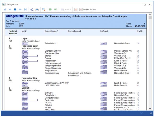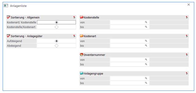 Die Anlagengruppe, der das Inventargut im Anlagenstamm zugeordnet wurde, kann in diesen Feldern eingeschränkt werden.