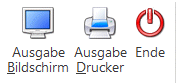 Standardmäßig wird die Ausgabe auf dem Bildschirm vorgeschlagen, die auch durch Drücken der F5-Taste gestartet werden kann.