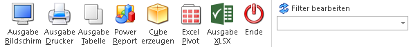 Mit Hilfe des Buttons "Ausgabe XLSX" wird die Auswertung mit den von Ihnen definierten Selektionen an Microsoft Excel übergeben.