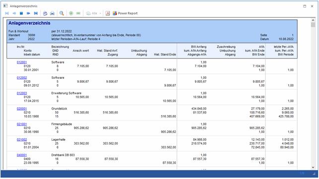 erhalten das Anlageverzeichnis des ganzen Wirtschaftsjahres. Es werden die Werte