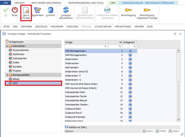 können Vorlagen angelegt werden, die wiederum bei den Büchern zugeordnet werden können. Es muss sich dabei um eine Vorlage des Typen "CRM" handeln.