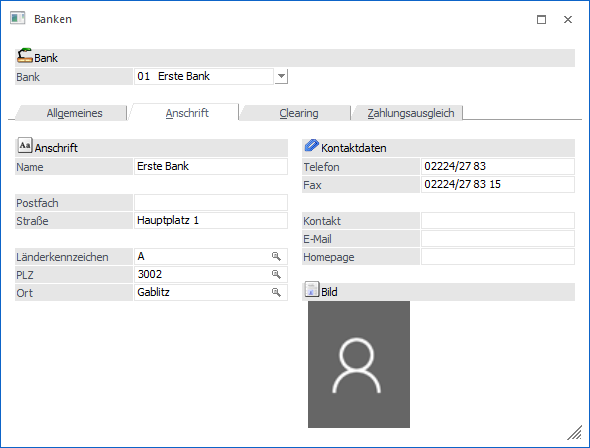 Eingabe des Ansprechpartners bei der Bank.