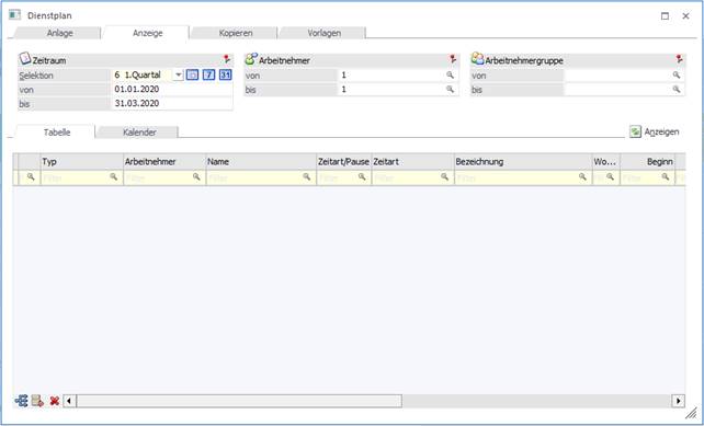 Ins Register "Anzeige" gelangt man entweder automatisch, sobald aus dem Register "Anlage" Sollzeiten angelegt werden oder das Register wird manuell aufgerufen. In diesem Register können je nach Selektion bzw. Auswahl die Sollzeiten und Fehlzeiten nach verschieden Kriterien angezeigt werden.