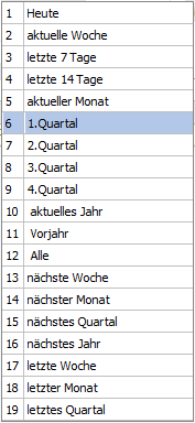 Über eine Auswahllistbox kann der Zeitraum selektiert werden, dabei stehen folgende Zeitraumselektionen zur Verfügung: