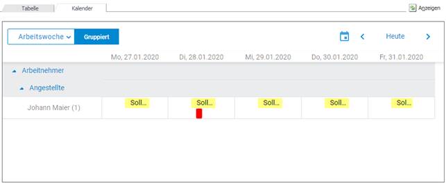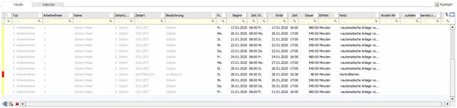 Beim Drücken des Anzeigen-Buttons werden alle Sollzeiten des angegebenen Zeitraums angezeigt.