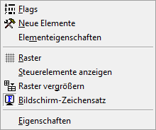 Aktiviert ein Raster auf dem Bildschirm, welches die genaue Positionierung von Elementen vereinfacht. Ein erneuter Klick auf diesen Menüeintrag deaktiviert das Raster wieder.