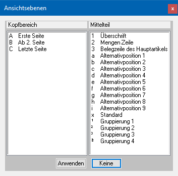 Durch Anwahl des Punkts "Flags" wird der Bereich "Ansichtsebenen" aktiviert bzw. deaktiviert. Mit dieser sogenannten Flag-Toolbox kann gesteuert werden, welche Elemente in einem Formular angezeigt werden sollen, wobei über die Flags auch der Ausdruck der Formulare selbst gesteuert wird.
