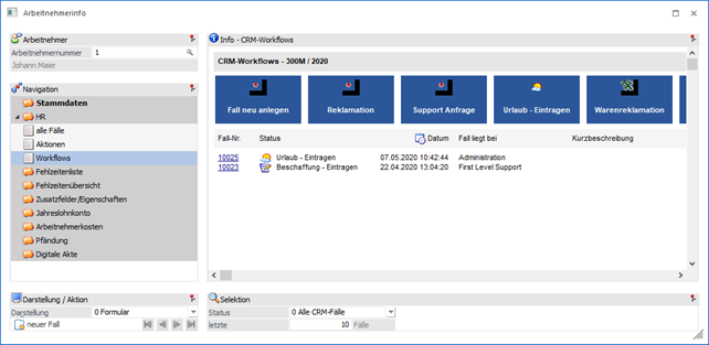 In der Ansicht "Workflows" werden die Fälle des aufgerufenen Arbeitnehmers angezeigt, für welche der angemeldete Benutzer das Recht hat, sie zu sehen. Die Darstellung kann hierbei in Form einer Formularansicht oder als Tabelle erfolgen.
