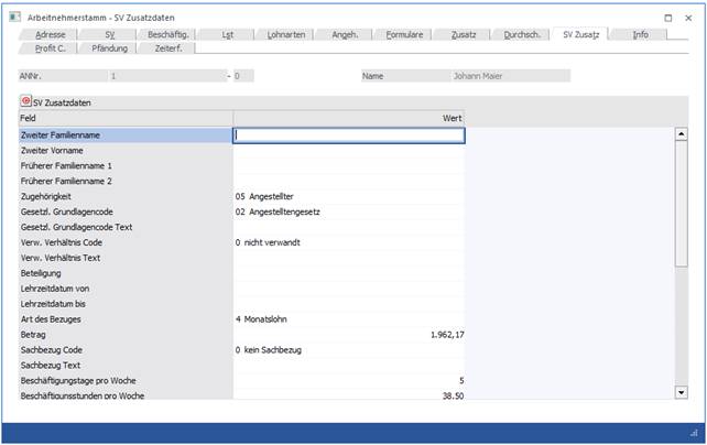 1 Register Arbeitnehmerstamm - SV-Zusatz