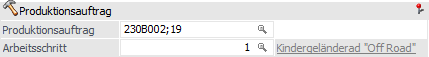An dieser Stelle kann auf einen bestimmten Produktionsauftrag eingegrenzt werden. Aufgrund dieser Hinterlegung wird im nachfolgenden Feld "Arbeitsschritt" die offenen Arbeitsschritte dieses Auftrags zur Auswahl vorgeschlagen.