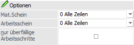 Mit den folgenden Optionen können Produktionsaufträge / Arbeitsschritte aufgrund des Druckstatus des Materialentnahmescheins selektiert werden: