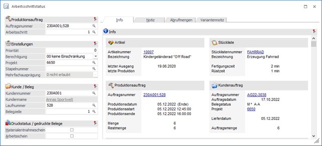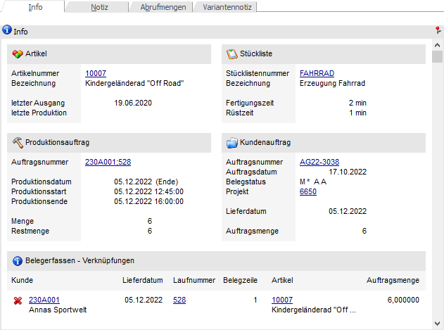 Produktionsauftrags und dem ggfs. vorhandenen FAKT-Beleg angezeigt. Sollten in