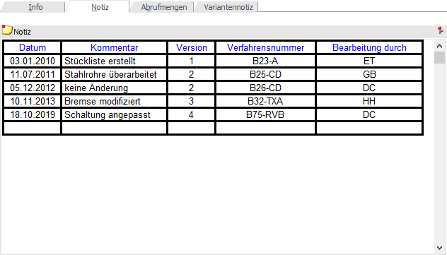 Die Notiz, welche bei der Anlage des Produktionsauftrags erfasst werden kann, wird in dem Register "Notiz" angezeigt und kann editiert werden.