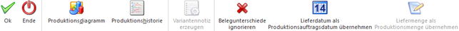 Die vorigen 3 Buttons stehen nicht zur Verfügung, wenn die Hauptartikelnummer des Produktionsartikels nicht dieselbe wie die Hauptartikelnummer des Auftragsartikels (in der Belegzeile) ist, z.B. wenn die Hauptartikelnummer in der Auftragszeile auf eine andere Artikelnummer nachträglich geändert wurde.