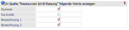 ü Ressourcen Ist-Erfassung (Anzeige der Ressourcen mit den selektierten Feldern (In Spalte "Ressourcen Ist-Erfassung" folgende Werte anzeigen), die angezeigt werden sollen