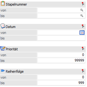 Auswahl von / bis der vorhandenen Stapelnummern