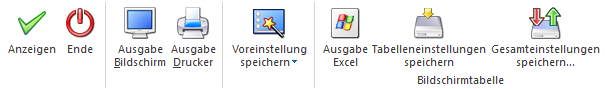 Mit Hilfe des Buttons "Ausgabe Bildschirm" oder der Taste F5 wird die Auswertung am Bildschirm ausgegeben.