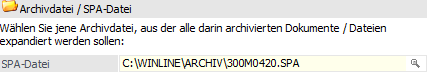 … können bestehende Archivdateien (SPA-Dateien) extrahiert werden, d.h. die Originaldateien werden wieder hergestellte (so, wie sie vor der Archivanalyse waren).