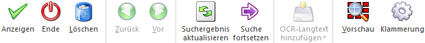 Ø Suchergebnis aktualisieren (nur Register "Archivanzeige")