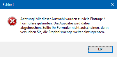 Wird die Anzahl der definierten Datensätze überschritten, so wird man über folgende Meldung auf dieses hingewiesen: