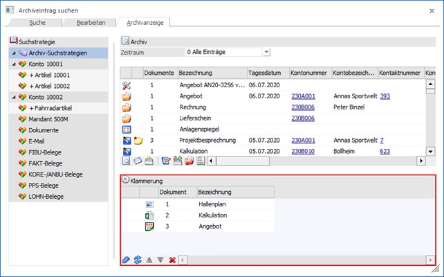 Ø Klammerung (nur Register "Archivanzeige")