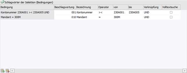 Tabelle "Schlagwörter der Selektion (Bedingungen)"