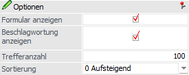 Die Checkboxen steuern den Umfang der Liste. Es werden entweder nur die gefundenen Formulare angezeigt oder auch die darin enthaltenen Schlagworte.