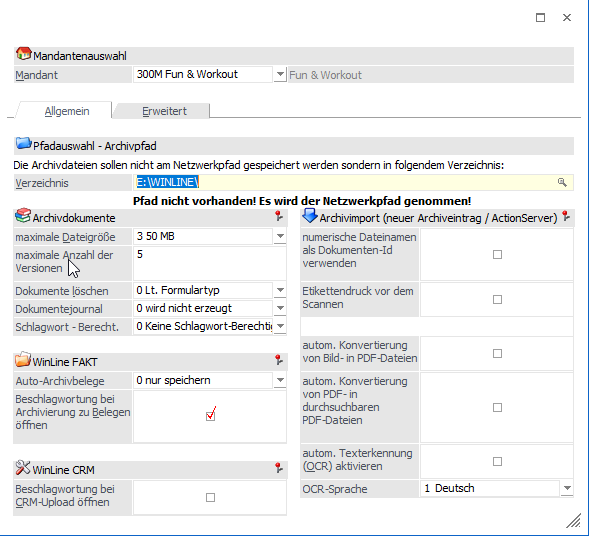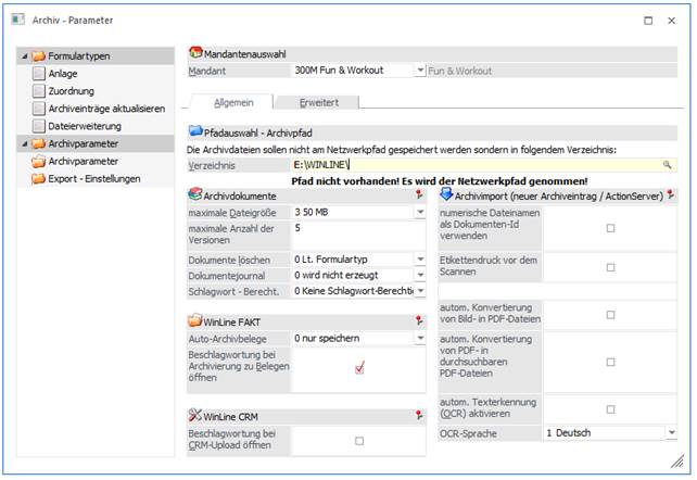 Für die Einstellung wird die WinLine ARCHIV II Lizenz benötigt.