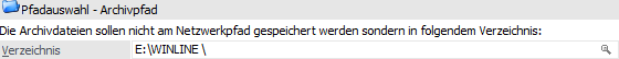 Wird hier kein Laufwerk bzw. Verzeichnis angegeben, so werden die Archivdateien automatisch in das Serververzeichnis gestellt. Das gleiche gilt für den Fall, dass ein Verzeichnis angegeben wurde, welches es nicht gibt oder (derzeit) nicht gefunden werden kann. D.h. auch in solch einem Fall wird, anstatt des angegebenen Verzeichnisses, der Netzwerkpfad als Archivpfad verwendet.