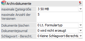 An dieser Stelle kann bestimmt werden, wie viele Versionen ein Archivdokument maximal aufweisen darf. Es sind maximal 99 Versionen möglich.
