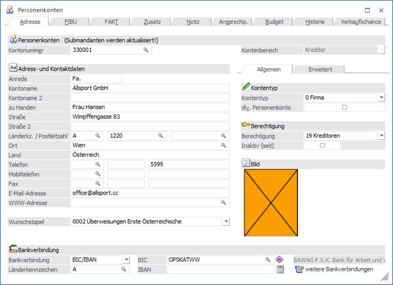 Im Personenkonto des Lieferanten "330001 - Allsport" ist ein Berechtigungsprofil hinterlegt, sodass diesen Datensatz nur bestimmte Benutzer sehen können.