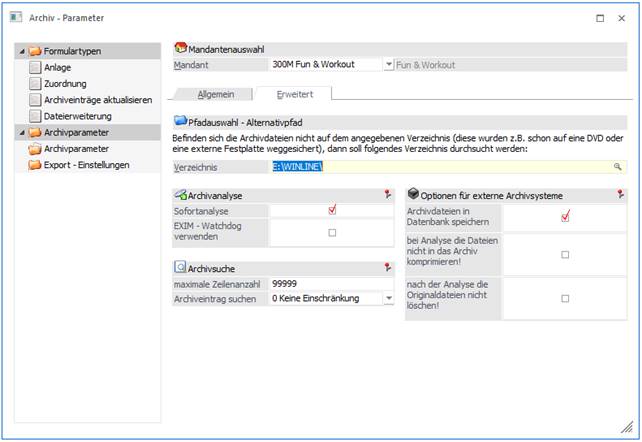 … können die Parameter des WinLine ARCHIV hinterlegt werden, wobei die Hinterlegung immer pro Mandant erfolgt.
