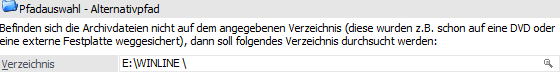 Hier kann eingestellt werden, welches alternative Laufwerk (Verzeichnis) nach den Archivdateien durchsucht werden soll (weitere Informationen entnehmen Sie bitte dem Kapitel Archiv verschieben).