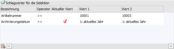 Tabelle "Schlagwörter für die Selektion"